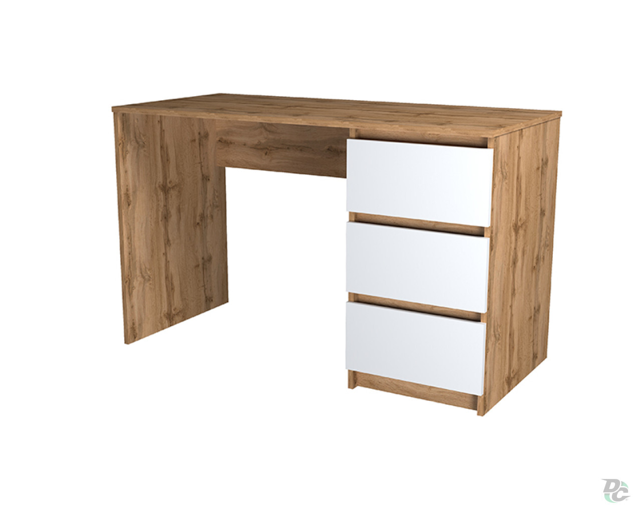 Dimensiuni: lungime 120cm x inaltime 75cm x adancime 55cm. Are 3 sertare. Material - PAL melaminat. Culoare: alb/stejar sonoma. Produsul se livreaza demontat, are greutatea de 33kg, consta din 2 colete. In colet gasiti accesorii si instructiuni pentru asamblare. Nu asiguram montaj. Livrarea este platita de destinatar si se calculeaza conform tarifelor firmei de curierat.