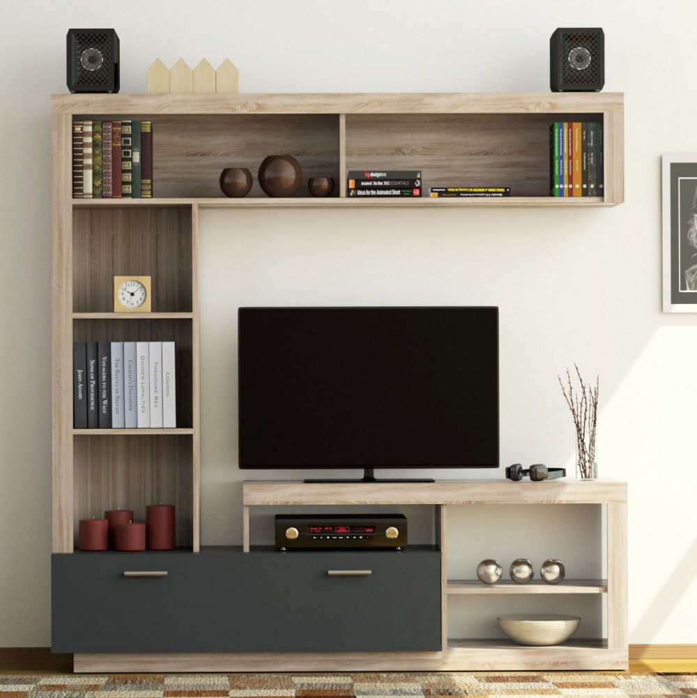 Dimensiuni: Lungime: 155cm, Inaltime: 121cm, Adancime: 28cm. Material - PAL melaminat cu grosimea 16mm. Culoare: sonoma. Produsul se livreaza demontat, la pachet, are greutatea de 30kg. In colet gasiti accesorii si instructiuni pentru asamblare. Nu asiguram montaj. Livrarea este platita de destinatar si se calculeaza conform tarifelor firmei de curierat.