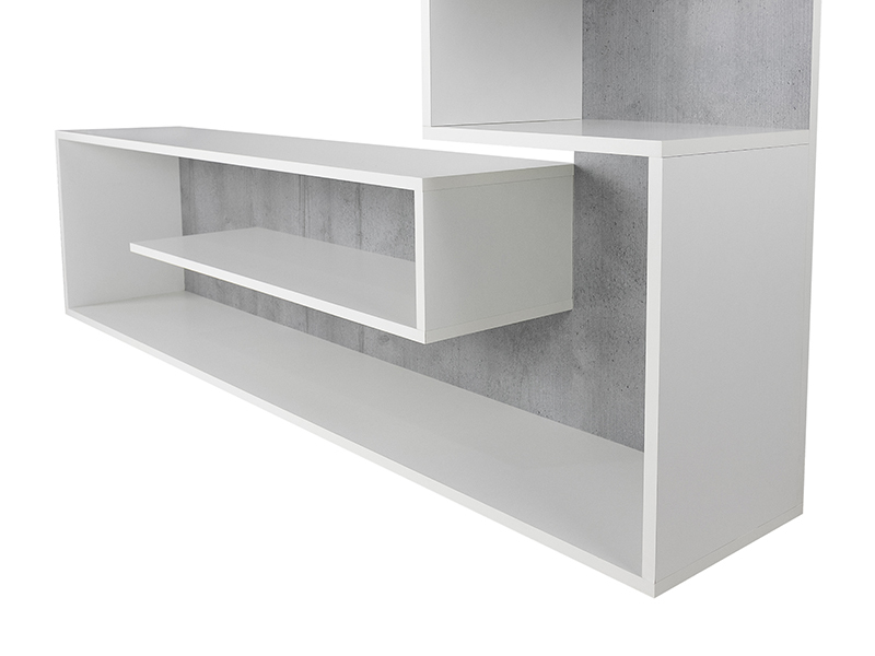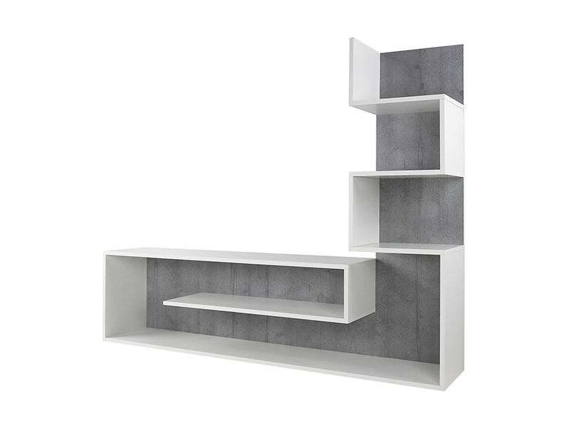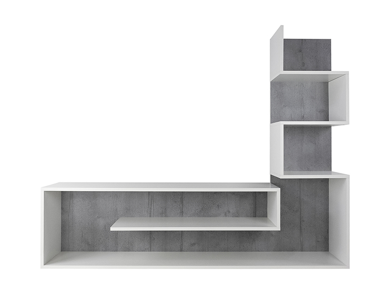 Dimensiuni: Lungime: 155cm, Inaltime: 121cm, Adancime: 28cm. Material - PAL melaminat cu grosimea 16mm. Culoare: gri/alb. Produsul se livreaza demontat, la pachet, are greutatea de 30kg. In colet gasiti accesorii si instructiuni pentru asamblare. Nu asiguram montaj. Livrarea este platita de destinatar si se calculeaza conform tarifelor firmei de curierat.