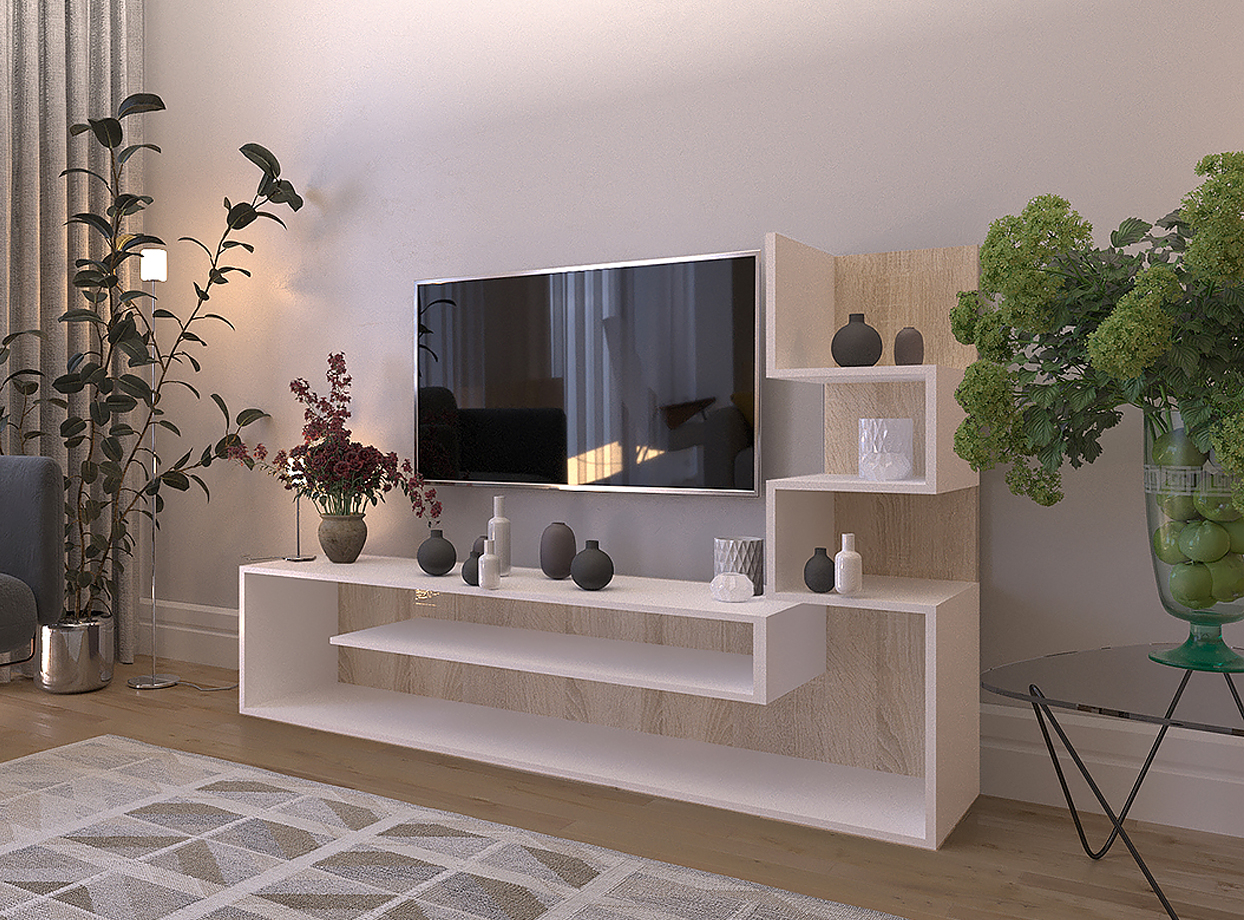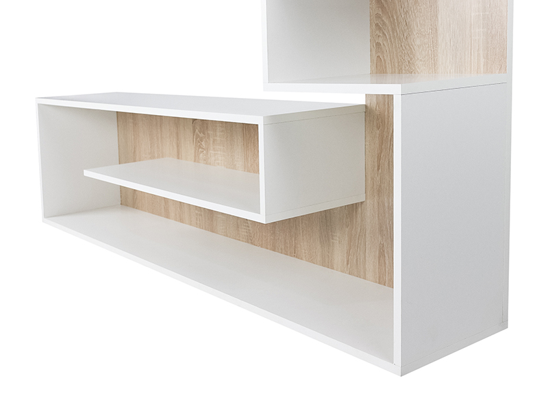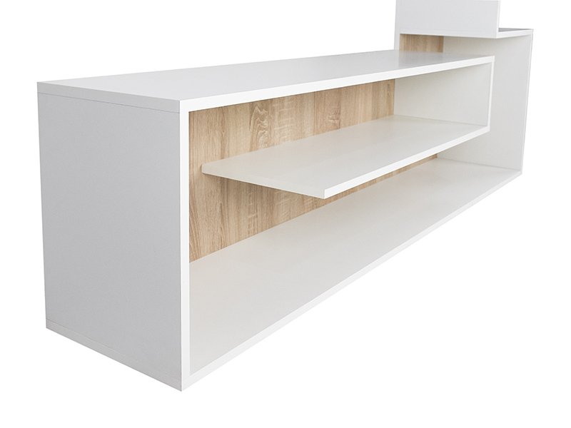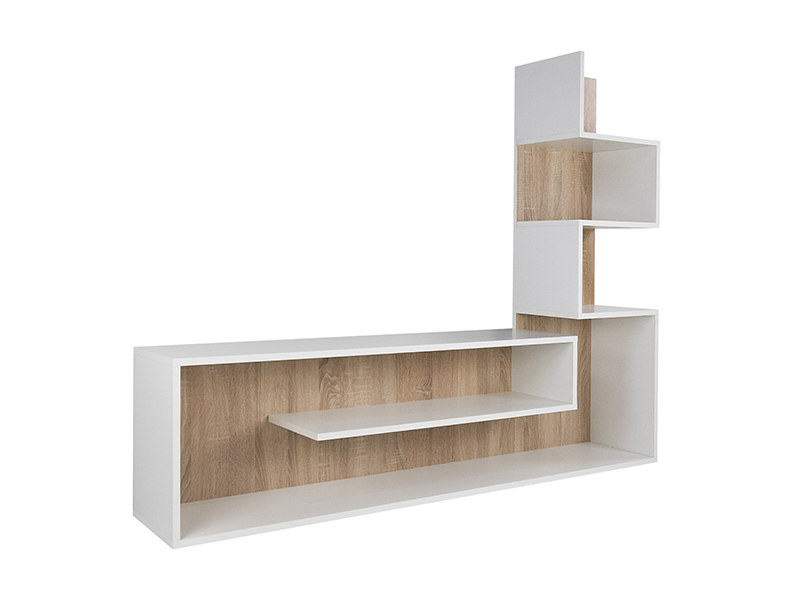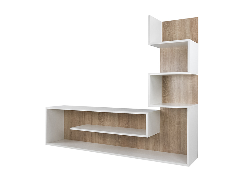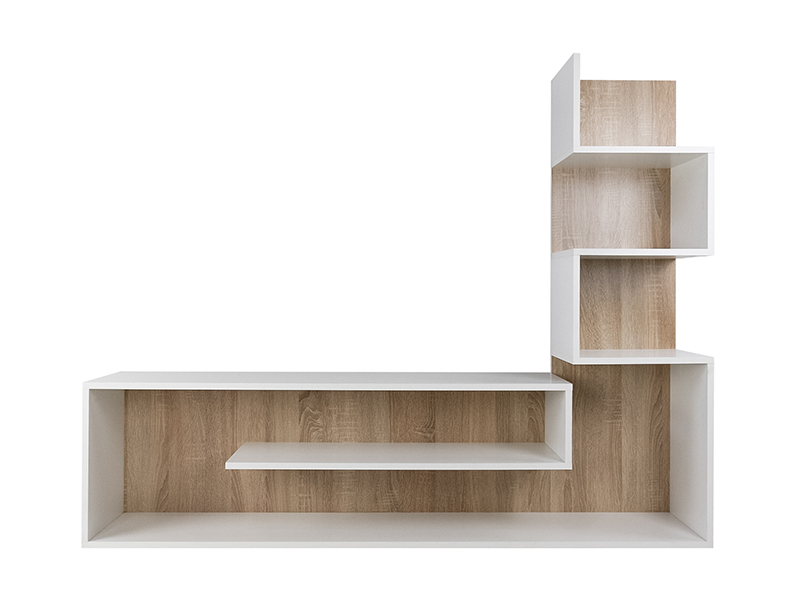 Dimensiuni: Lungime: 155cm, Inaltime: 121cm, Adancime: 28cm. Material - PAL melaminat cu grosimea 16mm. Culoare: alb/stejar sonoma. Produsul se livreaza demontat, la pachet, are greutatea de 30kg. In colet gasiti accesorii si instructiuni pentru asamblare. Nu asiguram montaj. Livrarea este platita de destinatar si se calculeaza conform tarifelor firmei de curierat.